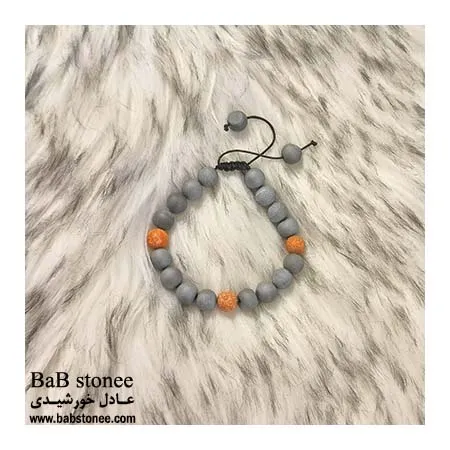دستبند سنگی آتشفشان طوسی و عقیق زرد مکزیک